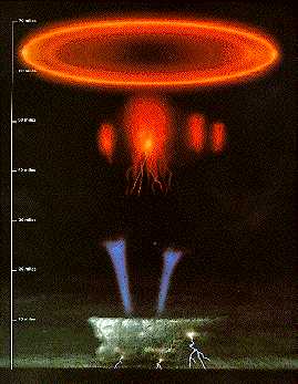 Elfos, espíritos e jatos, como ilustrado e descrito em julho de